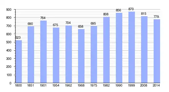 | Gráfica de evolución demográfica de Fontaines (Vendée) entre 1800 y 2014 |