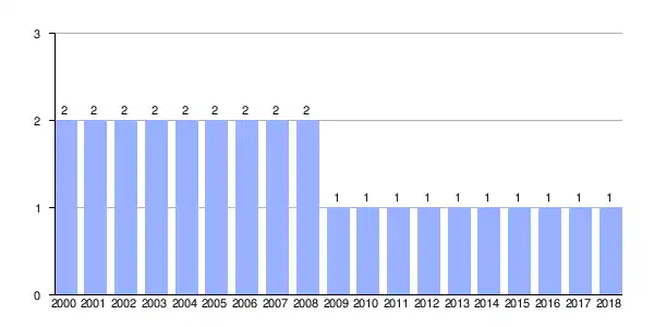 | Gráfica de evolución demográfica de Fontelas entre 2000 y 2018 |