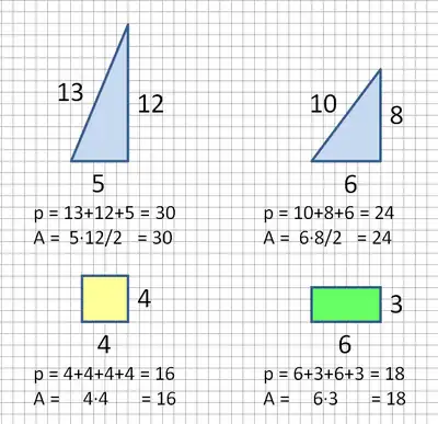Los únicos rectángulos ecuables con lados enteros son los cuadrados de 4 × 4 y los rectángulos de 3 × 6.[4] Un rectángulo entero es un tipo especial de poliominó, y más generalmente existen poliominoes con igual área y perímetro para cualquier área entera par mayor o igual a 16. Para áreas más pequeñas, el perímetro de un poliominó debe exceder su área.[9]
