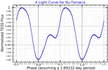 - ν Fornacis, variable Alfa2 Canum Venaticorum de magnitud media +4,68, la tercera estrella más brillante de Fornax.