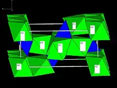 Forma dos series de solución sólida, una de ellas con la fayalita, en la que la sustitución gradual del magnesio por hierro va dando los distintos minerales de la serie. Una segunda serie es la que forma con la tefroíta, en la que se va sustituyendo el magnesio por manganeso.