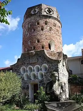 El primer elemento tiene una altura de seis metros, el segundo cinco metros y el tercero dos metros para un total de trece metros. La parte superior o techo no tiene ninguna almena de protección que sirviera de parapeto a los soldados.