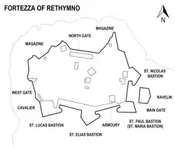 - Wass, Stephen. «Rethymno». fortified-places.com. Archivado desde el original el 19 de agosto de 2015.