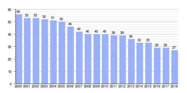 | Gráfica de evolución demográfica de Forxán entre 2000 y 2018 |