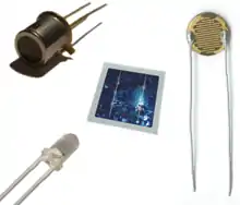 Un fotodetector es un sensor que genera una señal eléctrica dependiente de la luz u otra radiación electromagnética que recibe. Algunos están basados en el efecto fotoeléctrico, otros en el fotovoltaico, otros en el fotoelectroquímico y otros en la fotoconductividad.[1] Los fotodetectores basados en semiconductores suelen fotodetectores tienen una unión p-n que convierte los fotones de luz en corriente. Los fotones absorbidos forman pares electrón-hueco en la región de agotamiento. Los fotodiodos y los fototransistores son algunos ejemplos de fotodetectores. Las células solares convierten parte de la energía luminosa absorbida en energía eléctrica.