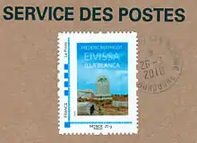 Sello de correos con la escultura Isla Blanca
