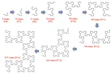 Esta curva se construye iterativamente aplicando, a la palabra Fibonacci 0100101001001 ... etc., la regla de dibujo de pares e impares: