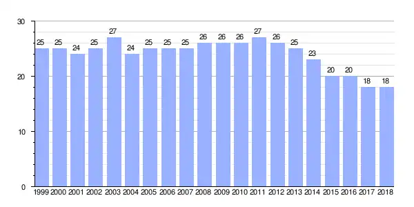 | Gráfica de evolución demográfica de Fraga entre 1999 y 2018 |
