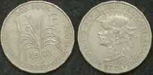 En 1848, el Banco de Pret introdujo billetes en denominaciones de 5, 10, 50, 100, 500 y 1000 francos. El Tesoro Colonial emitió bonos de un franco en 1854, seguido por otro de 2 francos en 1864, y finalmente fueron agregados los valores de 50 céntimos, 5 y 10 francos en 1884.