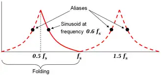 La frecuencia de Nyquist, llamada así por el ingeniero informático Harry Nyquist, es la mitad de la tasa de muestreo de un sistema de procesamiento de una señal discreta. También se le conoce como la frecuencia plegable de un sistema de muestreo. En la imagen utilizada abajo, se ve un ejemplo de como se pliegan los muestreos, donde fs es la tasa de muestreo y 0.5 fs es la correspondiente frecuencia de Nyquist.[1]
