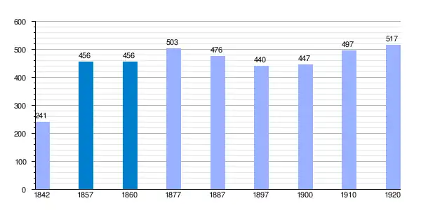 | Gráfica de evolución demográfica de Fregenite[4] entre 1842 y 1920 |