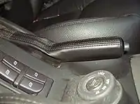 Sustituyó el tradicional freno de mano. El freno de mano Electrónico (EPB) se activa mediante un interruptor eléctrico y sin vínculo mecánico con los frenos. Puede funcionar de modo manual o automático. Se comercializó por primera vez en automóviles en 2001,[3] montado de serie sobre el Lancia Thesis.[4]