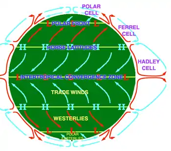 Los frentes son superficies que separan dos masas de aire de características distintas. Por tanto, a ambos lados de un frente se produce un cambio brusco de las propiedades del aire. Sus ondulaciones constituyen borrascas de dos frentes, que originan precipitaciones. El frente polar consiste en la colisión de aire cálido procedente de los anticiclones subtropicales, con los aires fríos procedentes de los anticiclones polares. Está formado por la sucesión de frentes encadenados. En verano, el frente polar se desplaza hacia latitudes mayores; y en invierno, hacia latitudes menores.