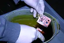 En esta modificación del fresado químico el material se elimina de piezas planas y delgadas mediante técnicas fotográficas. De esta manera se pueden troquelar de manera sencilla y sin rebabas geometrías complicadas, con bajo costo, puesto que el proceso es automatizable para aplicación en medias o grandes series de producción. Uno de los inconvenientes de este proceso es la eliminación de los residuos generados.