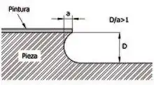 - Las piezas sufren de un ataque lateral, aunque éste no es muy acusado, con un factor de ataque D/a>1. El límite para que no se produzca un sobrevuelo del borde está alrededor de 3 o 4mm.
