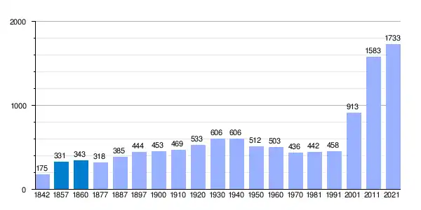 | Gráfica de evolución demográfica de Fresnedillas de la Oliva[13] entre 1842 y 2021 |