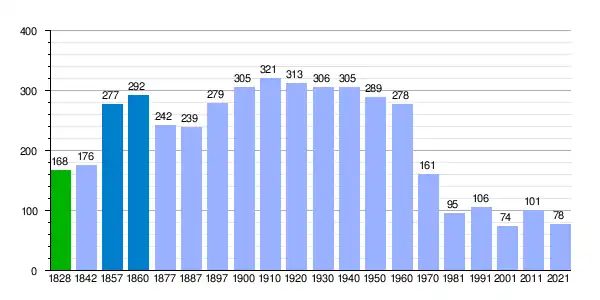 | Gráfica de evolución demográfica de Fresno de la Fuente[1] entre 1828 y 2021 |