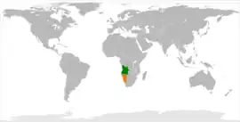 ![]() Localización de Namibia (naranja) y Angola (verde).