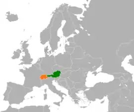 ![]() Localización de Austria (verde) y Suiza (naranja).