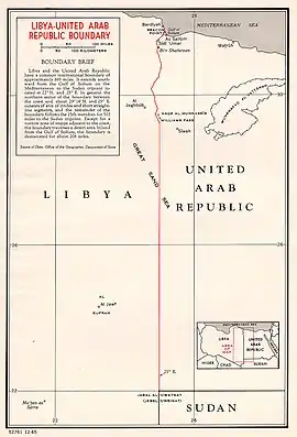 Egipto fue invadido por el Reino Unido en 1882. En los años siguientes, los británicos llegaron a un acuerdo con el Imperio otomano, que establecía el meridiano 25° Este como la frontera occidental entre Egipto y las provincias otomanas.[3] En 1912, tras la guerra ítalo-turca, Libia fue conquistada por Italia. La frontera entre las dos entidades fue determinada por dos tratados entre Italia y el Reino Unido, uno en 1925 y otro en 1926.[4] El Reino de Egipto se independizó el 28 de febrero de 1922 y el Reino de Libia el 24 de diciembre de 1951; el trazado de la frontera fue modificado después de sus independencias.