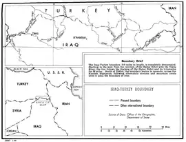 La frontera se estableció en 1926 cuando la Sociedad de Naciones decidió sobre la llamada cuestión de Mosul. Gran Bretaña recibió el antiguo territorio otomano de Irak como mandato después de la Primera Guerra Mundial. Sin embargo, la afiliación del vilayato de Mosul había provocado una disputa entre Gran Bretaña y Turquía. Esto se decidió a favor de Gran Bretaña en 1926.