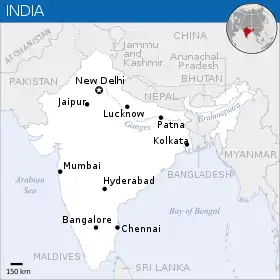 India comparte fronteras con varios países soberanos; por tierra con China, Bután, Nepal, Pakistán, Afganistán en el norte o noroeste, y Bangladés y Birmania en el este; por mar en tanto comparte fronteras con Sri Lanka, Maldivas e Indonesia.[1]