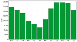 - Variabilidad: Dependiente del sitio.[31] Las brisas marinas son mucho más constantes que las brisas terrestres.[18] La variabilidad estacional puede reducir la producción en un 50%[32]
