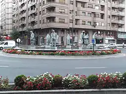 La fuente cuenta con un total de 8 estatuas de bronce a su alrededor, que representan a Quintiliano, Gonzalo de Berceo, Pedro del Castillo, Juan Fernández de Navarrete, Fausto Elhúyar, Zenón de Somodevilla y Bengoechea conocido como Marqués de la Ensenada, Julio Rey Pastor y el rey García Sánchez III de Navarra. Asimismo, esta fuente es ampliamente conocida como La fuente de las "espaldas mojadas", ya que las diferentes figuras reciben sobre sus espaldas parte del agua de la fuente del centro. El nombre se debe a una llamada al Buzón del Lector del Diario de La Rioja: tras criticar las estatuas, así la nombró, y desde entonces este término se hizo popular entre los logroñeses.