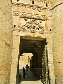 El fuerte de Jaisalmer es una antigua fortaleza india de origen medieval situada en la ciudad de Jaisalmer, en el estado de Rajasthan. Se cree que es uno de los pocos «fuertes vivos» del mundo (como Carcassonne, Francia), ya que casi una cuarta parte de la población de la ciudad vieja todavía residen en su interior.[1] Durante la mayor parte de sus 860 años de historia, el fuerte fue la propia ciudad de Jaisalmer y los primeros asentamientos fuera de los muros, para acomodar a una creciente población, surgieron en el siglo XVII.[1]