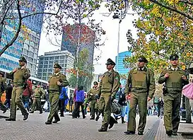 ![]() La policía uniformada de Chile, los Carabineros. | ||