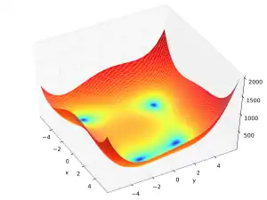 En optimización matemática, la función de Himmelblau es una función multimodal, definida sobre y usada para comprobar el rendimiento de los algoritmos de optimización.