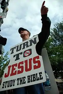 El fundamentalismo cristiano es el movimiento ultraconservador surgido entre los cristianos protestantes en Estados Unidos, a finales del siglo XIX como consecuencia de las teorías de la alta crítica alemana y el liberalismo teológico. Se caracterizan por lo general en estipular: la inerrancia de la Biblia y su historicidad plena, el literalismo bíblico, la adhesión a la literalidad de la creación del mundo por Dios en una semana (rechazo de la Teoría de la Evolución), la independencia de la Iglesia respecto el Estado, el nacimiento virginal de Jesús, y el rapto de los creyentes a la segunda venida de Cristo con el Milenio.[1][2]