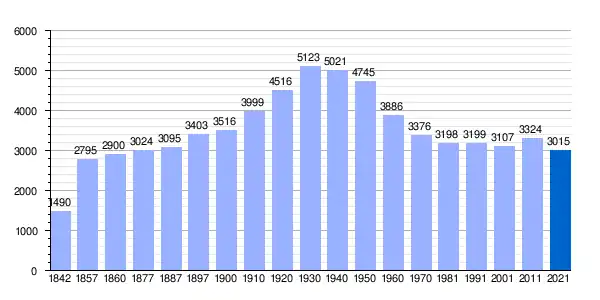 Población de derecho (1842-1991, excepto 1857 y 1860 que es población de hecho) o población residente (2001-2011) según los Censos de Población desde 1842. Población según el padrón municipal de 2021 del INE. |