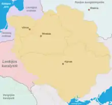 El matrimonio de Vladislao II Jagellón con la reina Jadwiga de Polonia inició la unión personal de Polonia y Lituania. Tras la batalla de Grunwald (1410) y el tratado de Melno[2] (1422) cesaron los ataques de la Orden Teutónica. Con la Paz de Toruń (1466) cesó la importancia de la Orden como potencia política.