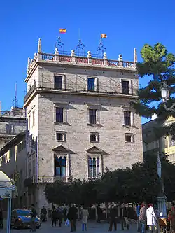 - En Valencia, la Lonja de Valencia, el Palacio de la Generalidad Valenciana, Palacio de Benicarló, las Torres de Serranos, Torres de Cuart, el Almudín de Valencia, Portal de la Valldigna, las Atarazanas del Grao, la Casa del Almirante, Palacio de Joan de Valeriola, Palacio de los Escrivà, etc.