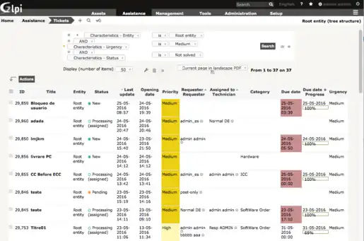 GLPi es una aplicación web que ayuda las empresas con la gestión de su sistema de información. Entre sus características, esta solución es capaz de construir un inventario de todos los recursos de la organización y de gestionar tareas administrativas y financieras. Las funcionalidades de este software ayudan a los administradores IT a crear una de base de datos de activos técnicos así como a gestionarla y proporciona un historial de las intervenciones de mantenimiento. La funcionalidad de asistencia (ticket) ofrece a los usuarios un servicio de declaración de incidencias o de solicitudes basadas en activos técnicos o no.[3]