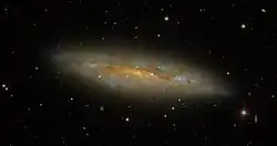El borde cercano de la galaxia M108 parece no tener ninguna protuberancia ni ningún núcleo pronunciado, es solo un disco moteado rico en detalles con un gran oscurecimiento a lo largo del eje mayor, con unas pocas regiones H II y cúmulos de estrellas jóvenes expuestos contra el fondo caótico -- en una palabra: 'Muy Sucio'. Hay pequeñas evidencias de un patrón espiral bien definido es esta galaxia de tipo Sc, la cual se aleja a 772 km/s. De acuerdo con Brent Tully, está a unos 45 millones de años luz de distancia, y es miembro de la nube de la Osa Mayor, una disperso racimo de galaxias. Tully clasifica esta galaxia como SBcd, es decir Sc muy tardía y barrada; el presente autor no puede encontrar evidencias sobre esto a partir de las imágenes conocidas. Es también una galaxia de brote estelar
