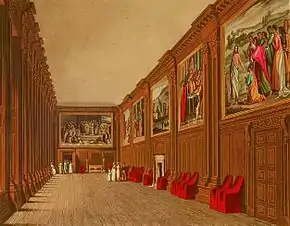 - La Galería de Luxemburgo, pintada por Rubens, en la cual este hábil artista había colocado la historia de los Médicis, después destruida.