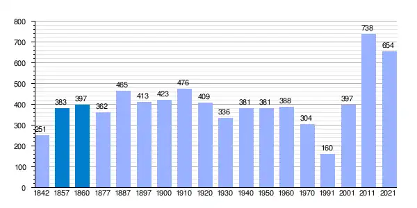 | Gráfica de evolución demográfica de Galindo y Perahuy[9] entre 1842 y 2021 |