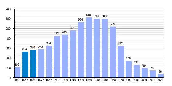 | Gráfica de evolución demográfica de Gallegos de Sobrinos[2] entre 1842 y 2021 |