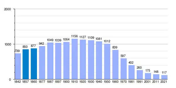 | Gráfica de evolución demográfica de Gallegos de Solmirón[6] entre 1842 y 2021 |