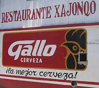 ![]() Cartel publicitario de la cerveza Gallo | ||
