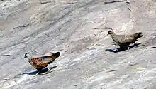 El faisancillo moteado[2] (Galloperdix lunulata) es una especie de ave galliforme de la familia Phasianidae endémica de la India. Los machos tienen el plumaje de las partes superiores castaño densamente moteado en blanco, a diferencia de las hembras, que son de tonos menos intensos y carecen de las motas. Los machos tienen de dos a cuatro espolones mientras que las hembras pueden tener solo uno o dos en sus tarsos. Se encuentra principalmente en hábitats forestales rocosos y con matorral, a diferencia del faisancillo rojo. Suele estar en el sotobosque en parejas o pequeños grupos, y cuando se asusta sale corriendo y rara vez emprendie el vuelo.