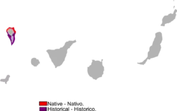 Su hábitat se encuentra a 800 metros sobre el nivel del mar, habita en el litoral en la isla de La Palma en las Islas Canarias, España, entre la vegetación xerófita (típica de regiones secas). Sus restos aparecen a menudo en yacimientos paleontológicos recientes, en tubos volcánicos o asociados a las habitaciones aborígenes y los concheros. Se han detectado restos de esa especie en yacimientos localizados en los Llanos de Aridane, en el Roque de Mazo, en el barranco del Cuervo, en la Puntilla, en los Tilos, en el Tendal, en el Rincón, en Cueva Chica, en Casas del Remo, en las Caletas y en Puntallana.