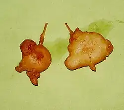Por regla general se le quitan las cabezas a las gambas antes de ser rebozadas en la masa, dejando sólo el cuerpo y la cola con la piel. La cola se suele emplear como un elemento que ayuda al consumidor. Se sirve el plato recién frito, no conviene dejar esperar mucho tiempo. Suelen comerse con los dedos y no se emplea ningún cubierto.