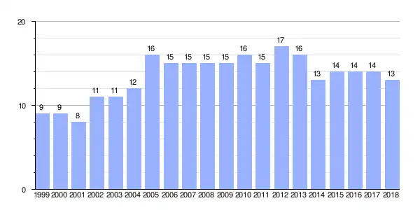 | Gráfica de evolución demográfica de Garabatos entre 1999 y 2018 |