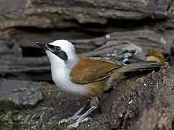 El charlatán crestiblanco (Garrulax leucolophus)[2] es una especie de ave paseriforme de la familia Leiothrichidae que vive en el sur de Asia. Este tordo reidor es en realidad un Timalí grande y de cola larga. Tiene un canto traqueteante y explosivo que se ha comparado a veces con una risotada diavólica.