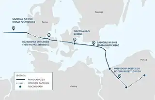 ![]() Mapa del gasoducto escandinavo que conecta a Polonia con los países escandinavos. | ||
