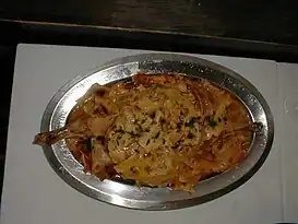 - Pierna de cordero a la Pašticada (piezas enrolladas de Pršut en salsa de vino blanco)