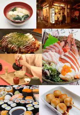 El término moderno "Comida japonesa" (nihon ryōri 日本料理?) o washoku (和食?) se refiere a dicha comida al estilo tradicional, similar a la que existía antes del final del aislamiento nacional de 1868. En un sentido más amplio de la palabra, podrían incluirse también alimentos cuyos ingredientes o modos de cocinarlos fueron introducidos, posteriormente, del extranjero, pero han sido desarrollados por japoneses que los han hecho suyos. La comida japonesa es conocida por su énfasis en la estacionalidad de los alimentos (旬, shun), calidad y presentación de sus ingredientes.